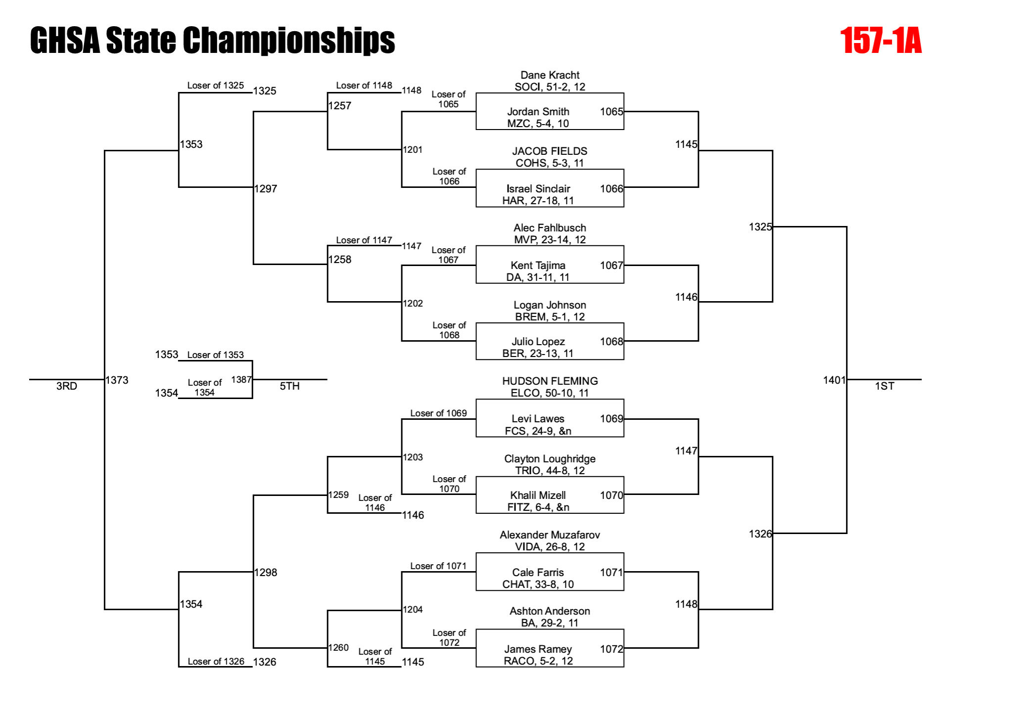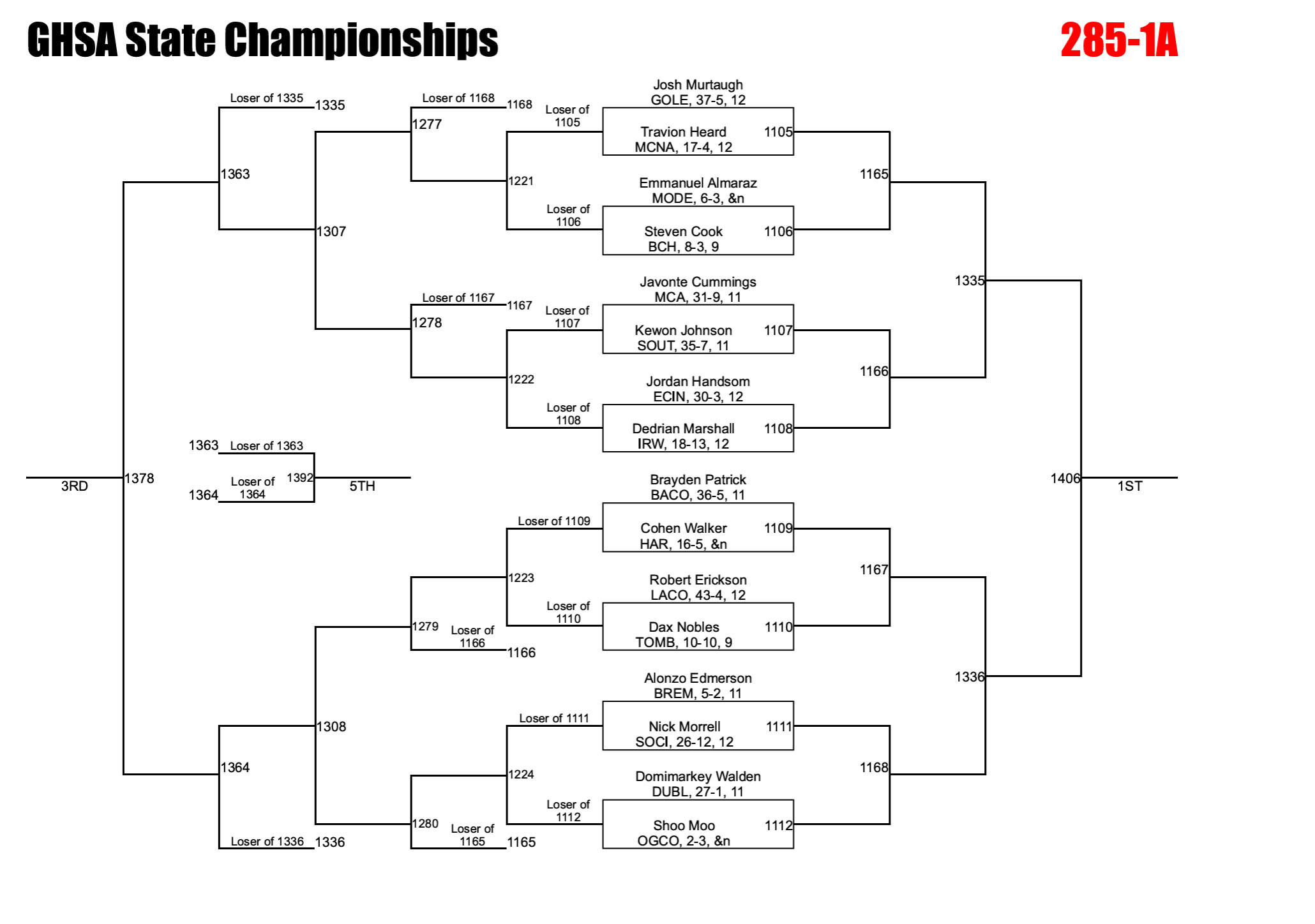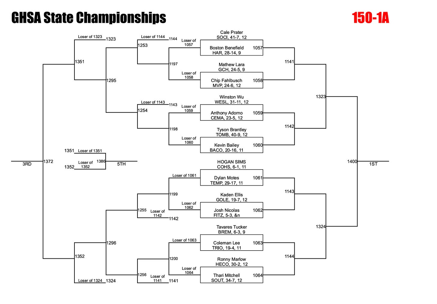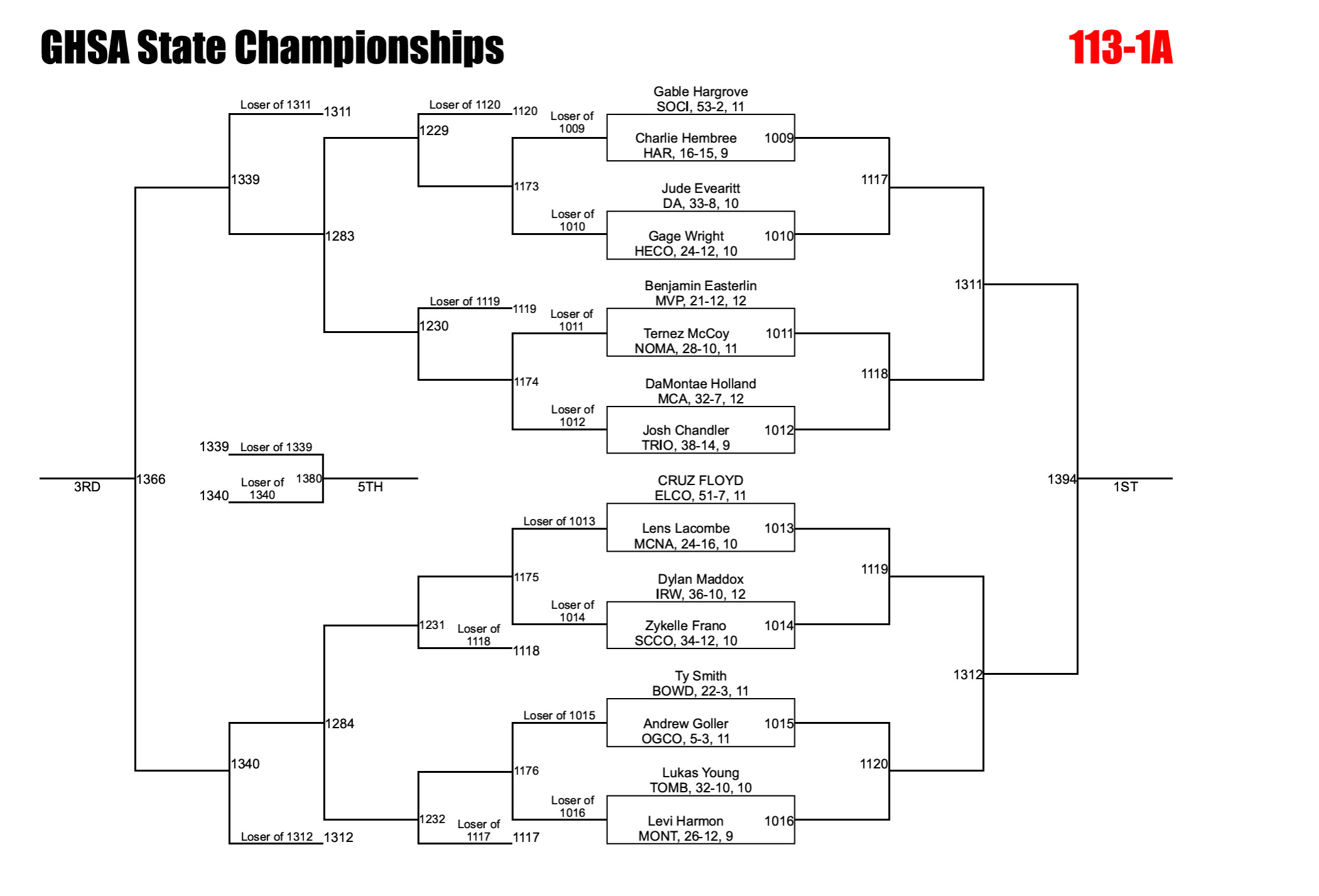Georgia uses an alternate solution to help ensure brackets are full. If a qualified wrestler is unable to compete due to injury, the designated alternate is inserted into the bracket and the remaining competitors are adjusted accordingly. This can significantly impact both the bracket layout and individual matchups.