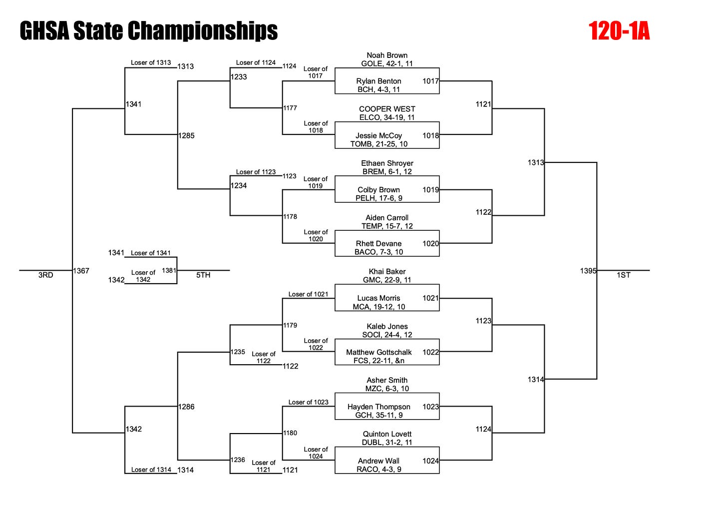 Like 113, this weight is headlined by a returning state champion—but this time we raise the stakes with a two-time state champion in Noah Brown. Brown is simply better than everyone else in the bracket. That doesn’t guarantee a third title, but objectively, he’s one of the best 120-pounders in Georgia, and if he wrestles the way he has all season, he should walk away with another championship.