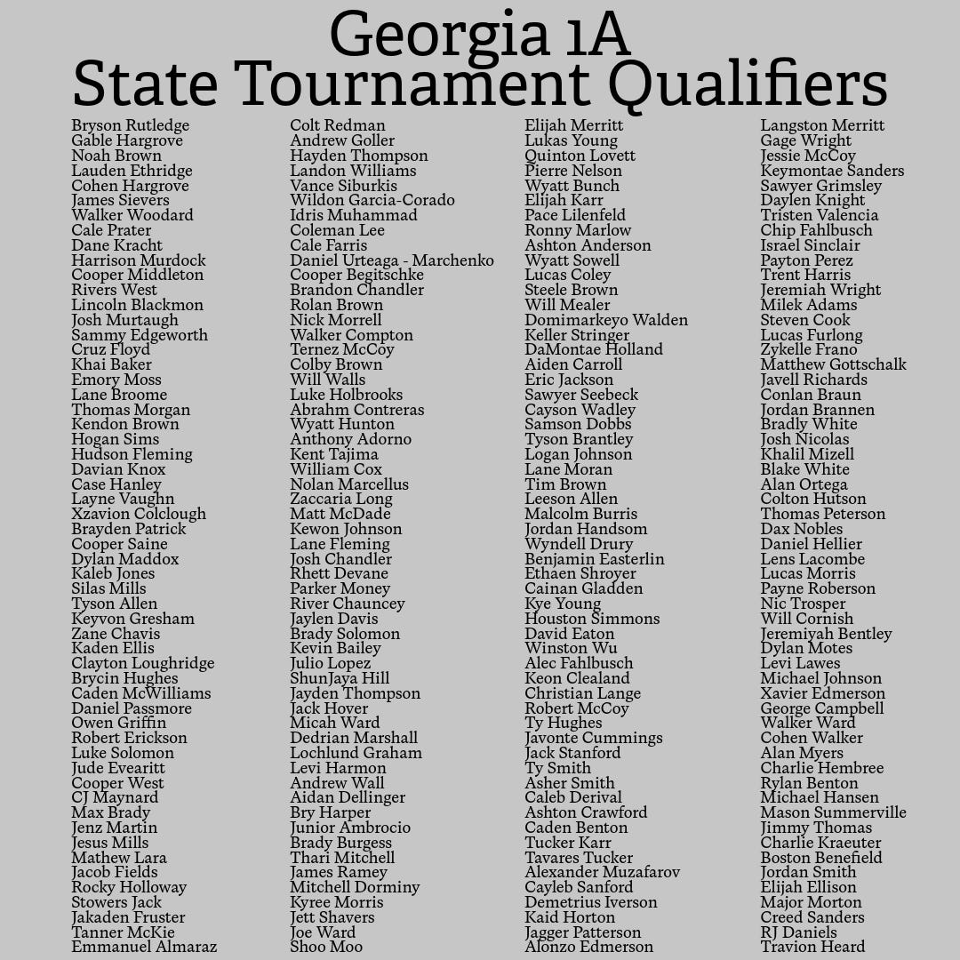 Our hope is that every athlete goes out, competes to their ability, and gives themselves the best chance to achieve their goals. The sole purpose of our Substack, Facebook, Instagram, Fan’s Guides, photos, and coverage is simple: to promote the sport of wrestling in the Southeast.
