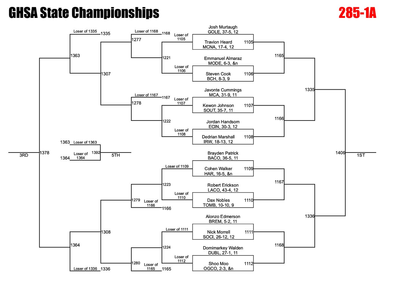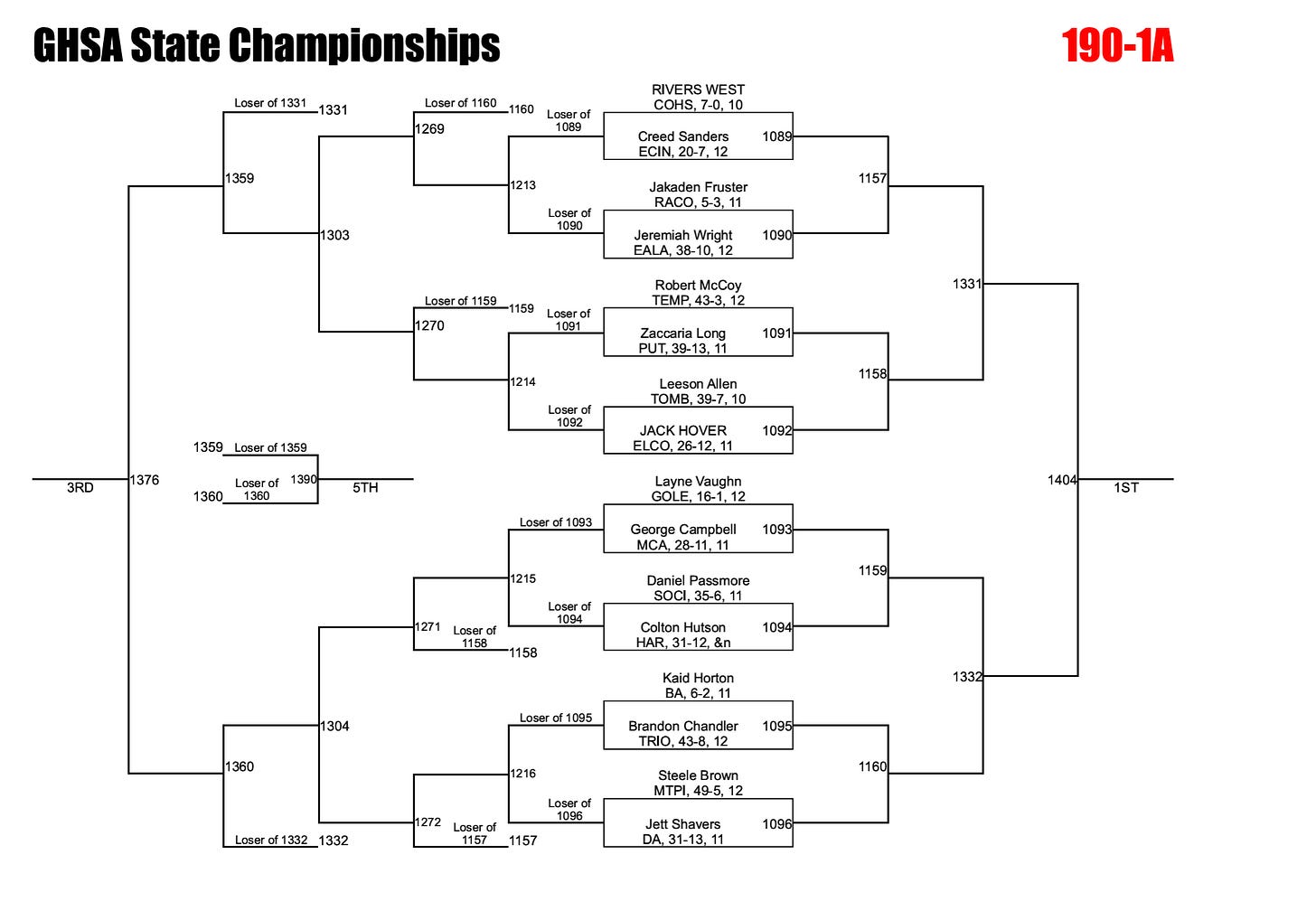 175 may be the best weight in 1A. Five returning state placers and four additional returning state qualifiers make this bracket absolutely loaded, and picking a favorite here felt like flipping a coin. Coley and Middleton both emerged from deep sectional tournaments with relative ease, which is saying something given the level of competition.